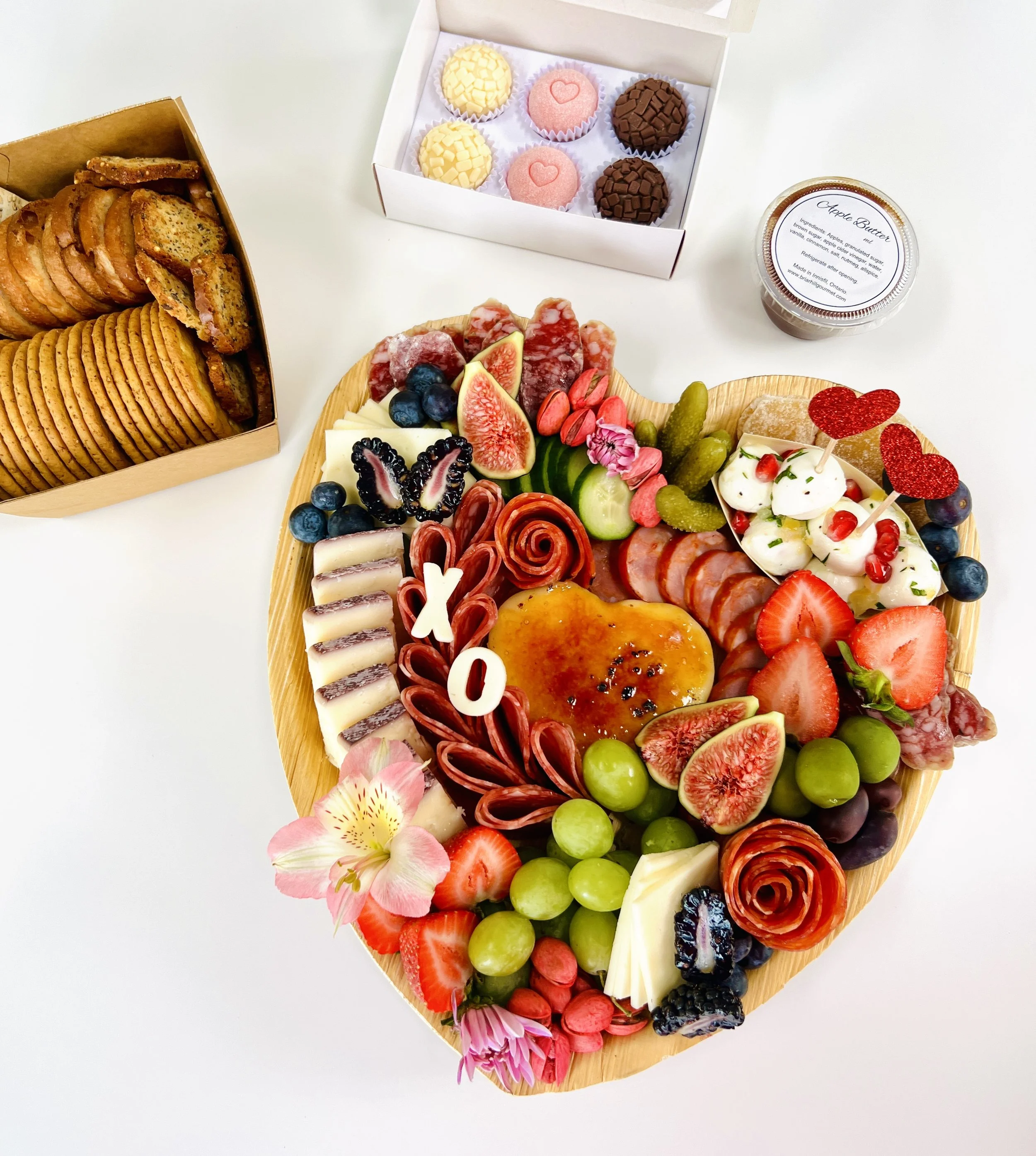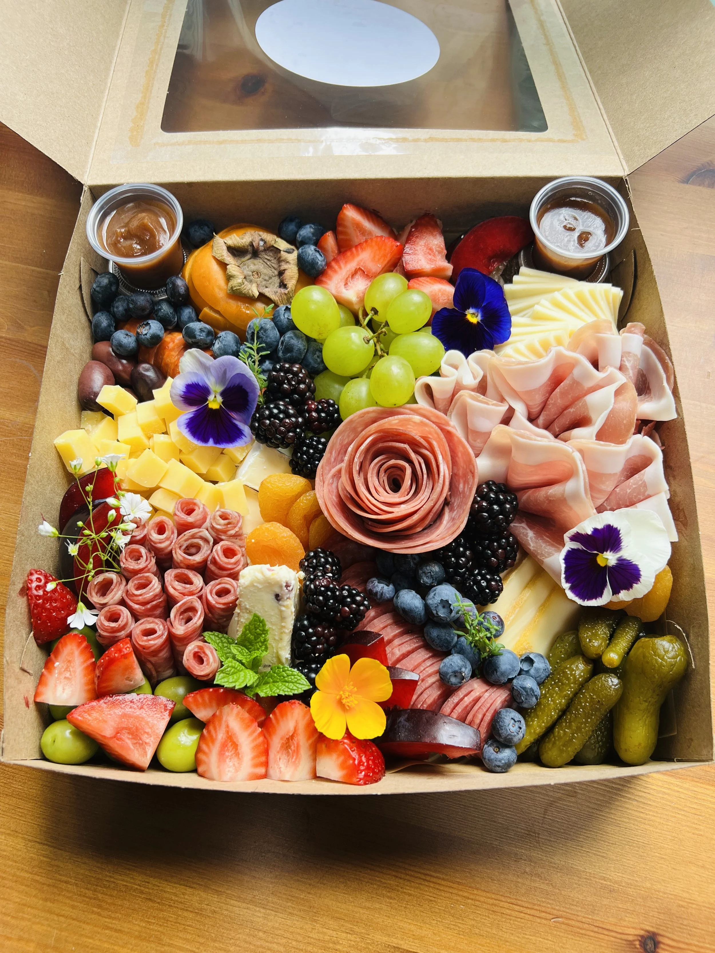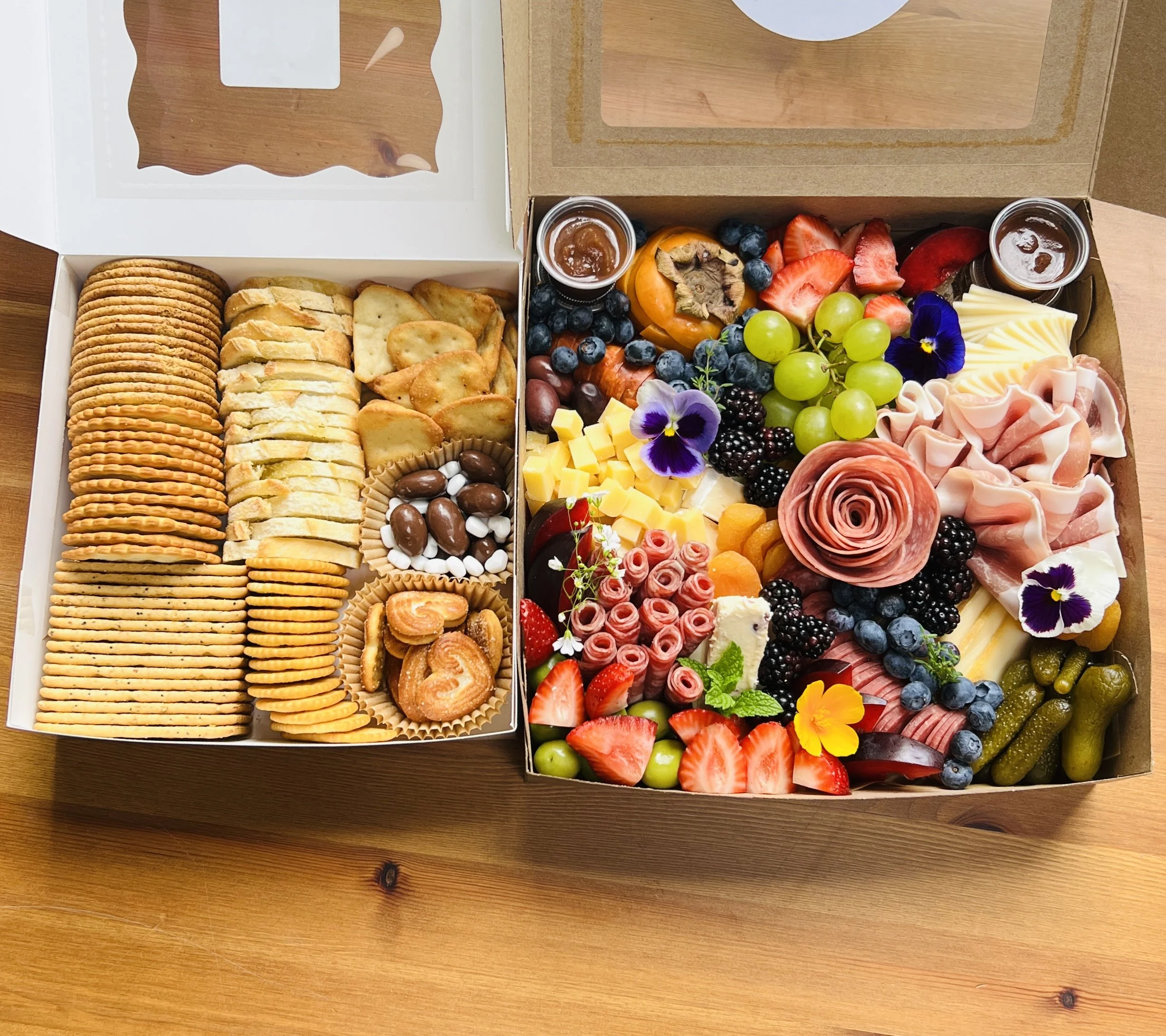 Our charcuterie boxes are a work of art. Every box is freshly made-to-order and bursting with colour, flavour, and variety. Please notify us of any dietary restrictions or special requests when ordering.